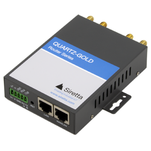 Der Siretta QUARTZ GOLD-Router verfügt über ein robustes Design in einem kleinen Metallgehäuse, wodurch er sich ideal für den Einsatz in industriellen Embedded-Anwendungen eignet. Durch die unterstützte VPN-Sicherheit kann der Router sowohl in kommerziellen als auch in industriellen Anwendungen eingesetzt werden.